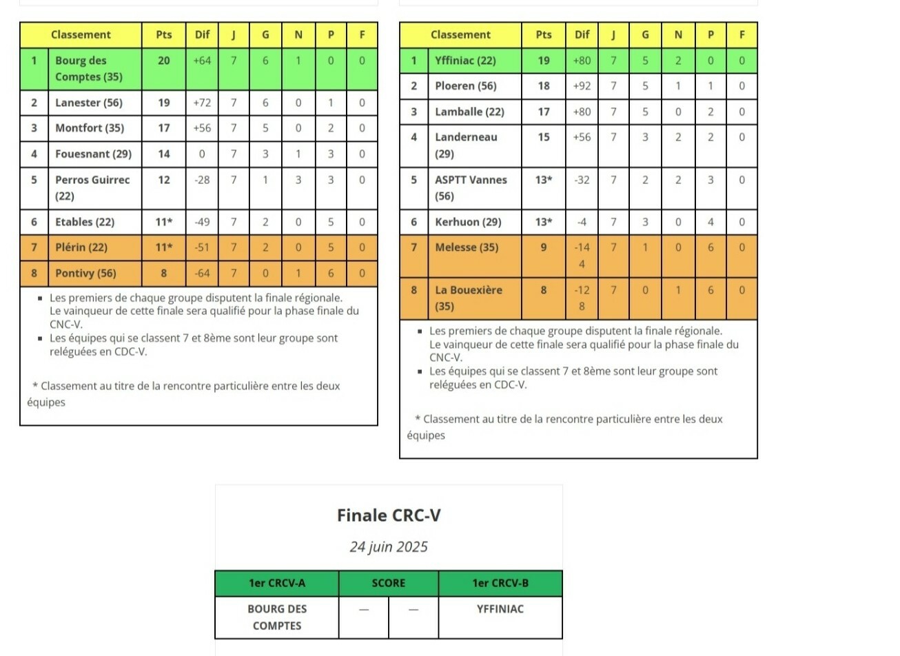 Championnat Régional Senior Féminin : Calendrier - Résultats
