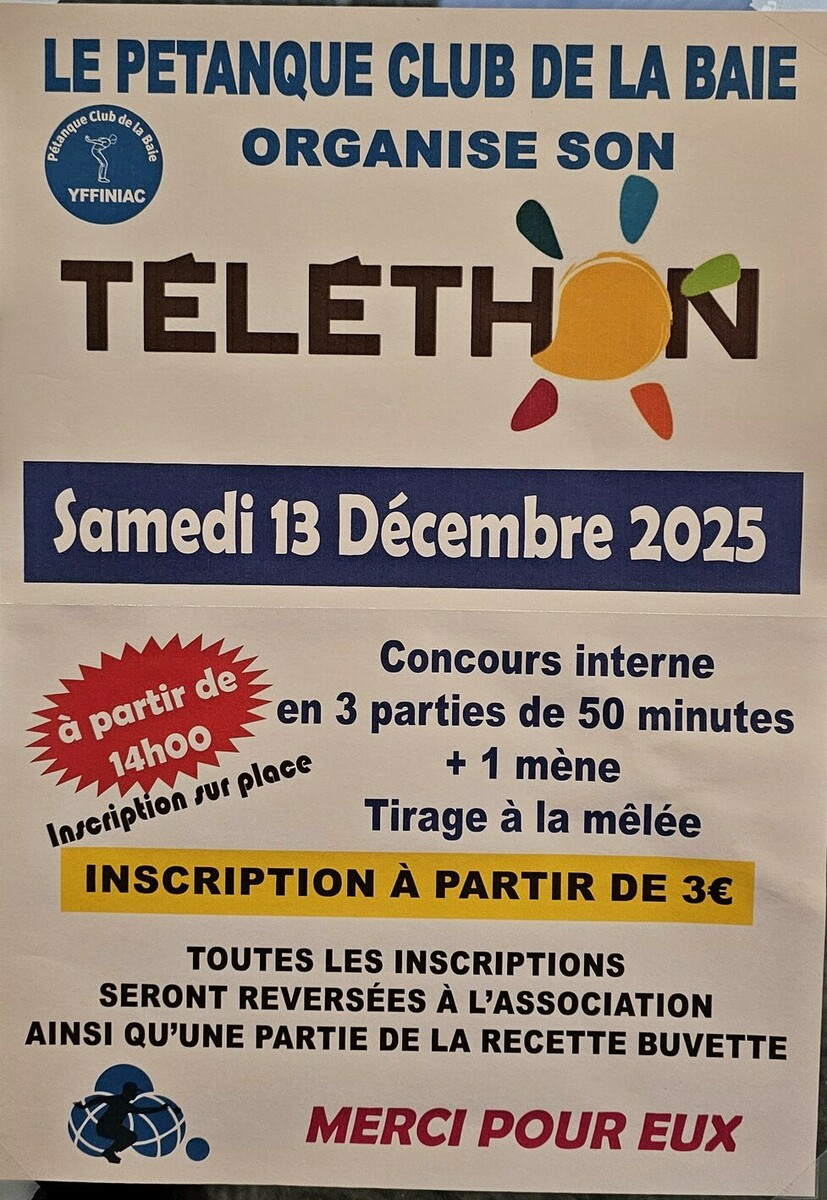 Bonne participation du Pétanque Club de la Baie : 78 personnes inscrites pour le concours de Pétanque au profit du Téléthon.