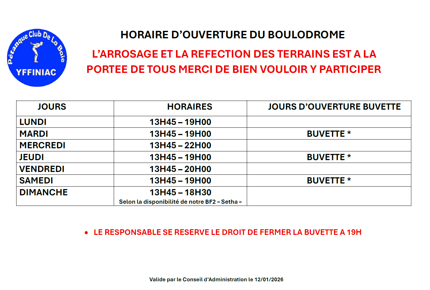 Les horaires sont également disponibles sur le site sous le Menu "INFOS PRATIQUES" / Page "Documents".