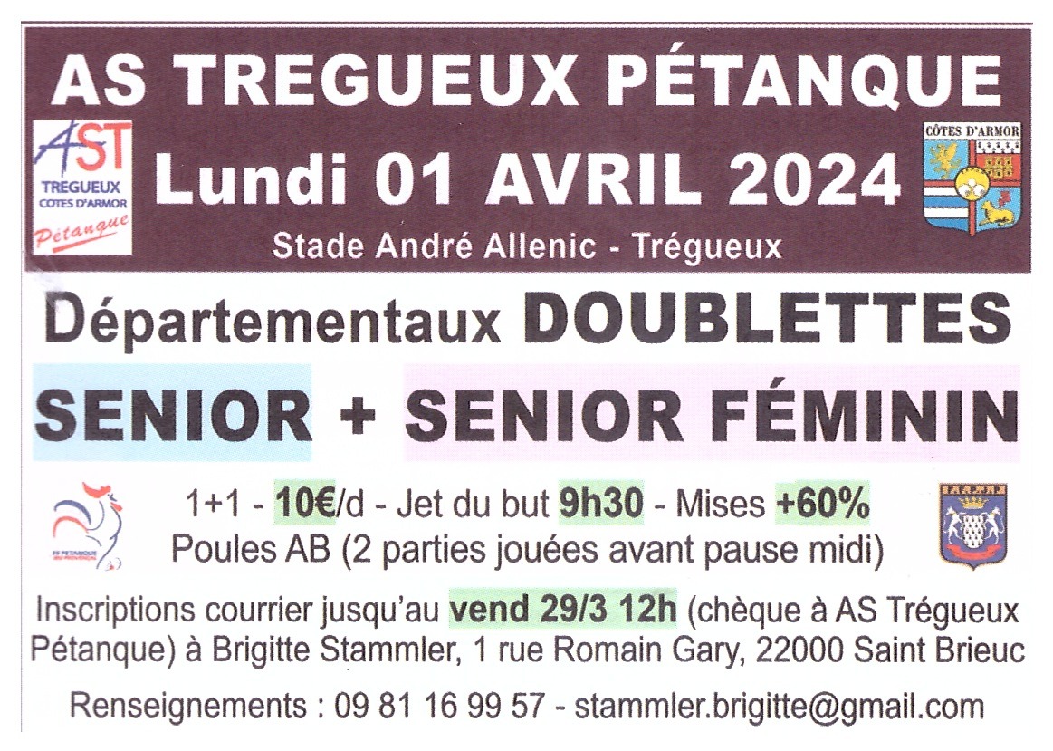 Départementaux Doublettes Sénior + Sénior Féminin à Trégueux