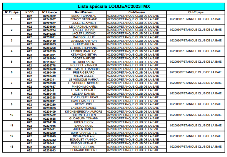Equipes d'Yffiniac au Championnat Départemental Senior Triplettes à Loudéac les 25 et 26 Mars 2023