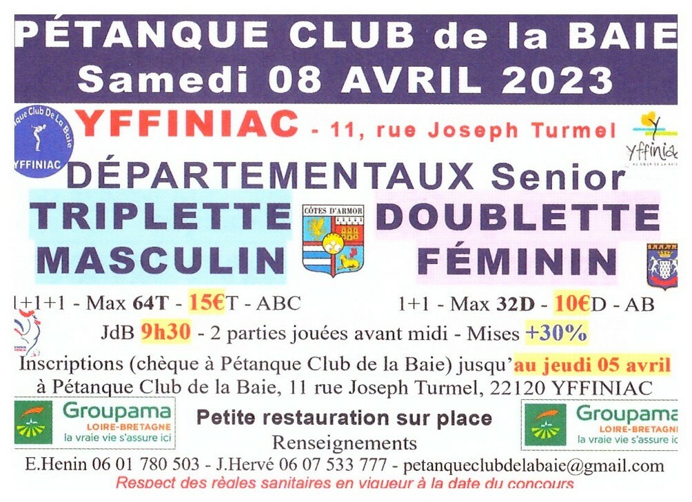 Equipes Triplettes Senior Masculines Inscrites au Concours d'Yffiniac le 8 Avril 2023