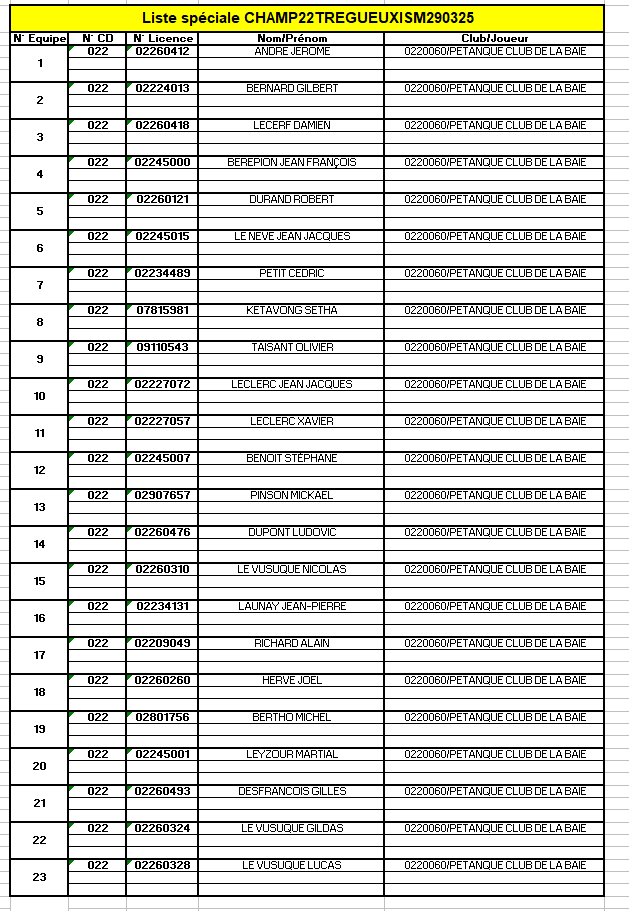 Inscription au championnat départemental tête à tête masculin à LOUDEAC OU TREGUEUX le 29 Mars 2025
