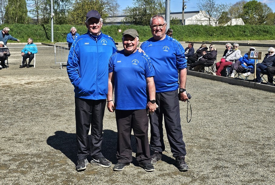 Et voici l'édition du championnat triplette vétérans dans les Côtes d'Armor s'achève. La finale a opposé 2 équipes du club de la Baie : les finalistes, Stéphane Benoît, Xavier et Jean Jacques Leclerc et celle qui a été sacrée championne composée de Jean Jacques le Neve, Martial Leyzour et Michel Bertho. Merci pour cette finale qui a été equilibree. Ludovic Coquillon a arbitré cette finale. Les 6 équipes qui nous représenteront à Cleder sont issues des clubs de Perros Guirec, de la Baie, de Lamballe de Saint Julien, de Tregueux et Étables. Je remercie les 93 équipes présentes, le club de Lamballe et ses bénévoles. Patrick Renwez à la table de marque et Loic Eymerit délégué du comité ( texte emprunté à Maryse Droff ).