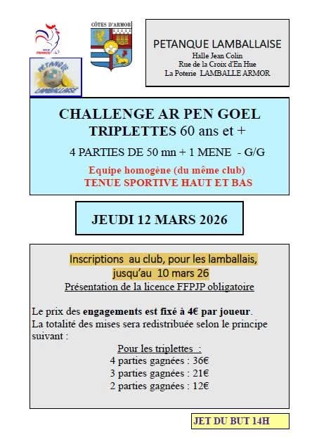 Liste des Equipes inscrites à Ar Pen Goël à Lamballe le Jeudi 12 mars 2026
